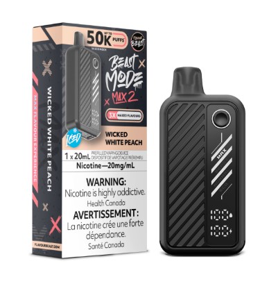 The Flavour Beast Beast Mode Max 2 in Wicked White Peach is a premium disposable vape designed for users who demand ultimate control over their vaping experience. This next-generation device combines a sophisticated flavour profile with advanced technological features, offering up to 50,000 puffs from a single device. The flavour is a delicate and elegant swirl of white peach, providing a smooth, sweet, and tangy profile that delivers a burst of fruity delight with every inhalation.