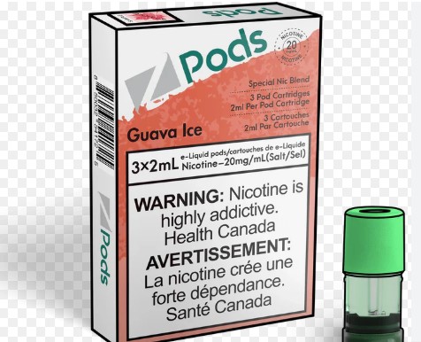Enjoy the tropical sweetness of ripe guava combined with a cool menthol finish in ZPods Guava Ice. Each pack contains 3 STLTH-compatible pods, each filled with 2mL of 20mg nicotine salt e-liquid, offering a refreshing, smooth vaping experience. Perfect for fruity vape lovers!